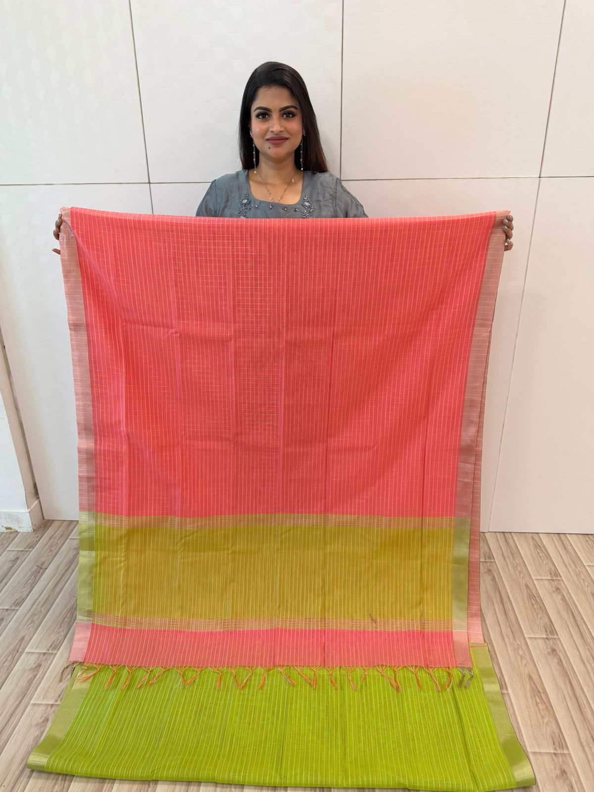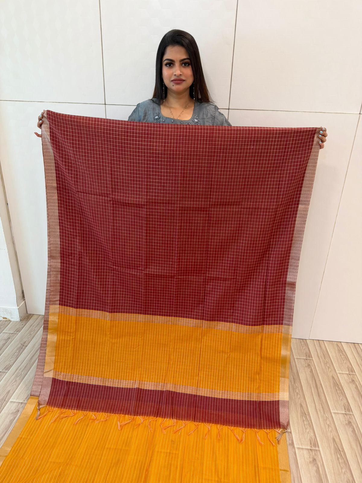 Indha saree avlo compliments kedachudhu 100 % apdi eruku saree. effortless uh drape panna varudhu.thankyou so much kiruthikha's boutique